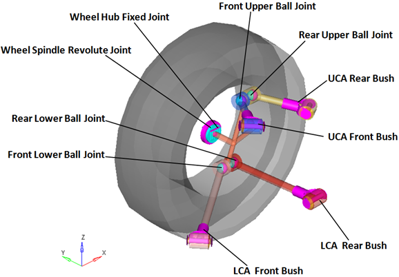 Rear Upper Ball Joint | 球 | ナックル | リアアッパーコントロールアーム | リアのアッパー球ジョイント | CompliantオプションがNoに設定されると、このジョイントのコンプライアンスは“オフ”に設定され、純粋な球ジョイントとして動作します。 |