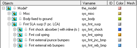 オプションのサブシステムにより、ボディがサスペンションに追加されることがあります。例えば、ショックアブソーバーにより、2つのボディ(ショックロッドとショックチューブ)が追加されます。