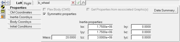 ホイールボディのパラメータは、ホイールボディ用のボディパネル(対応するサスペンションシステムのBodiesフォルダーの下)にあります。 図 9.
