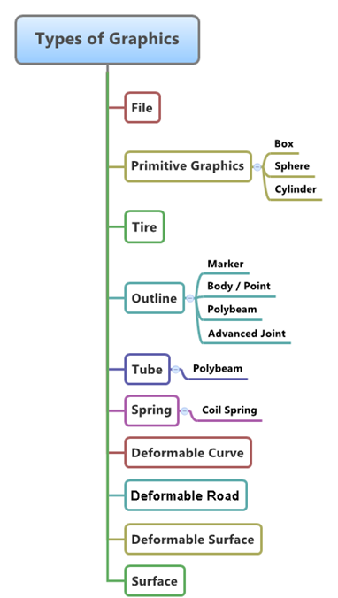 グラフィックスは、プリプロセス時またはポストプロセス時にエンティティを可視化します。MotionViewで利用可能なグラフィカル表現には、次の2つの主要カテゴリーがあります。