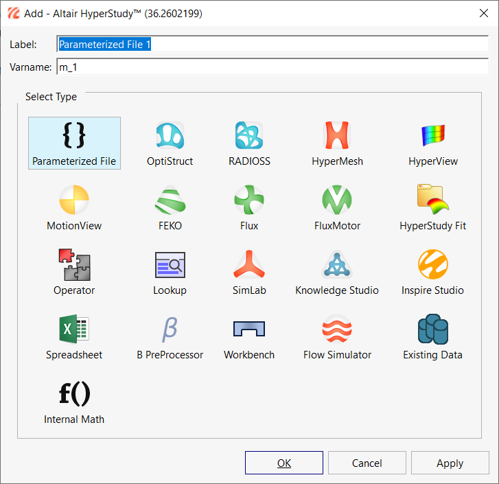 HyperStudy - Add Modelダイアログが表示されます。図 1.