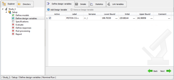 選択した変数が、HyperStudyのDefine design variablesページにリストされます。