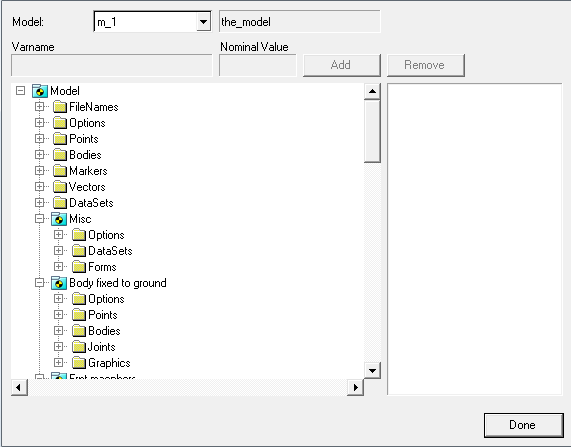 Model Parameter Treeダイアログが表示されます。注: このダイアログが非表示になっている場合があります。必要に応じてMotionViewアプリケーションをクリックし、このダイアログを表示します。図 1.
