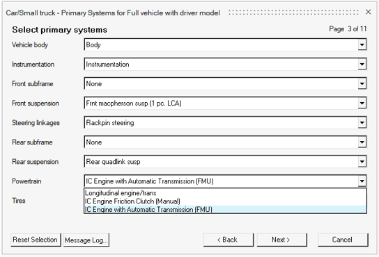 MotionView車両ライブラリ内のオートマチックトランスミッションパワートレイン