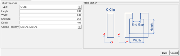 C-Clipタイプに使用するオプションについて以下で説明します。図 1. Clipsコンポーネント - クリッププロパティ(C-Clipタイプ)