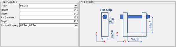 Pin-Clipタイプに使用するオプションについて以下で説明します。図 2. Clipsコンポーネント - クリッププロパティ(Pin-Clipタイプ)