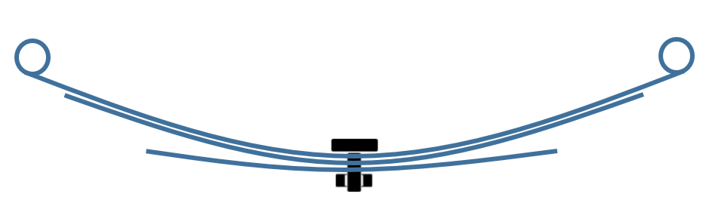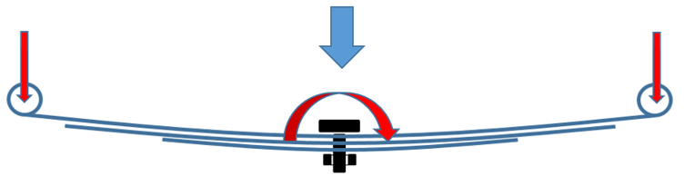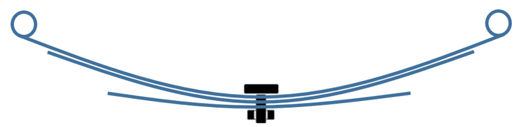 • 組み立て前の形状:下吊式スプリングの一番上のリーフのボルト位置と上吊式スプリングの一番下のリーフのボルト位置。