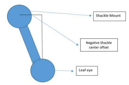 シャックルコンポーネントを使用して、シャックルの取り付け先であるリーフアイを基準としてシャックルの方向を定義します。どちらのアイフックでも“Slider”を選択していない場合にのみ、このコンポーネントが必要です。