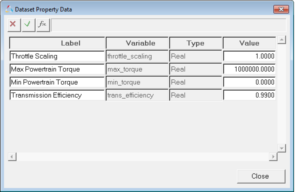 1 100%スロットルでのパワートレイントルク。 2 0%スロットルでのパワートレイントルク。 3 Throttle Scaling 4 Reserved(予約済み) 5 Reserved(予約済み) - ソルバー変数:
