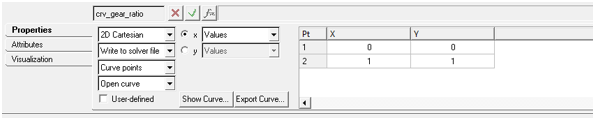 - ギア比カーブ: ギアボックスのギア比に関する情報を含むカーブ。このカーブは、マニュアルトランスミッションをモデル化するIC Engine Friction Clutch Powertrainとの整合性を維持するためのものです。線形トルクマップにはギア比が1つしか含まれていません。ギア0はニュートラルギアを意味しますが、ドライバーがギア0にシフトすることはないため、ギア比は重要ではありません。