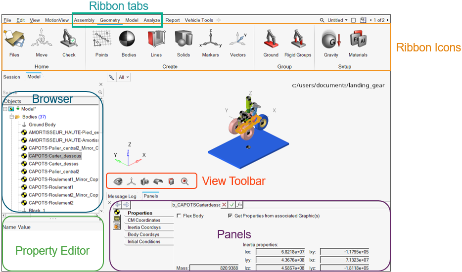 ユーザーインターフェースは、MotionViewまたはアプリケーションで作業を行う際の一貫した外観と操作性を提供します。図 3.
