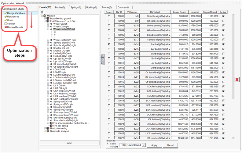 これらの手順は、MotionView 2024の最適化ウィザードに組み込まれています。このウィザードでは、上記の手順を実行するための直感的で手順を追ったアプローチが採用されています。Optimizationウィザードには、以下の方法でアクセスできます。