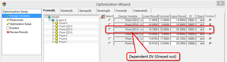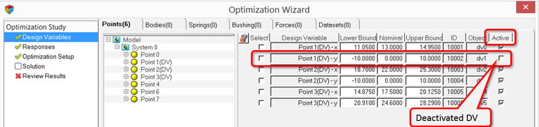 設計変数を非アクティブにするには、Active列で目的のDVのチェックボックスを選択解除します。