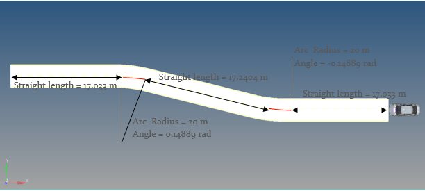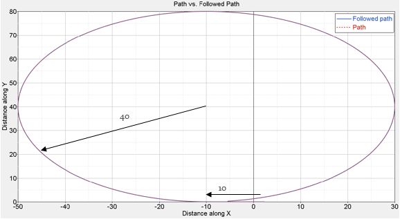 これは、直線(20 m)と円弧(半径 40 m、角度 6.283184 rad. 時計方向)のシーケンスである経路を生成します。図 3.