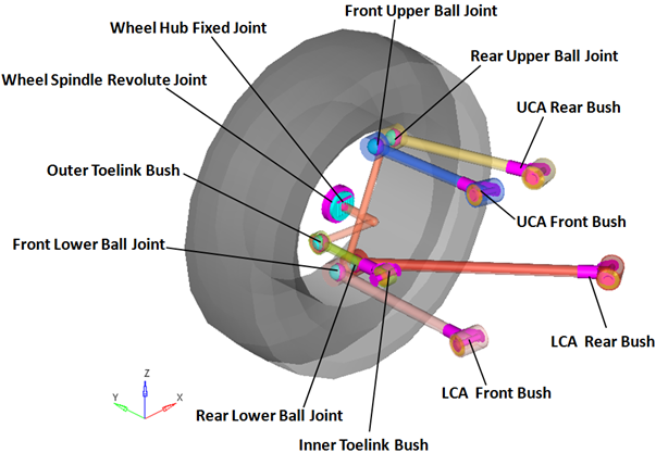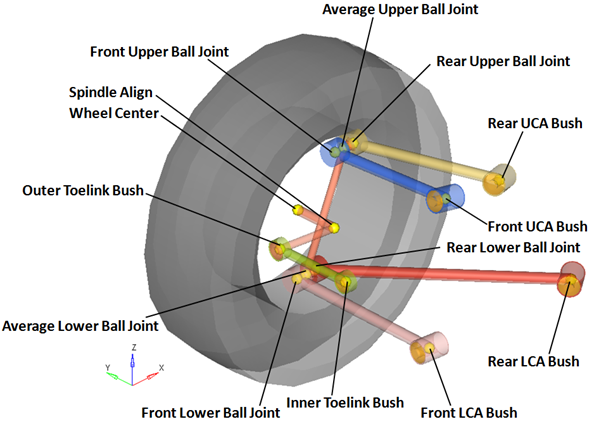 Rear Upper Ball Joint | 球 | ナックル | リアアッパーコントロールアーム | リアのアッパー球ジョイント | CompliantオプションがNoに設定されると、このジョイントのコンプライアンスは“オフ”に設定され、純粋な球ジョイントとして動作します。 |