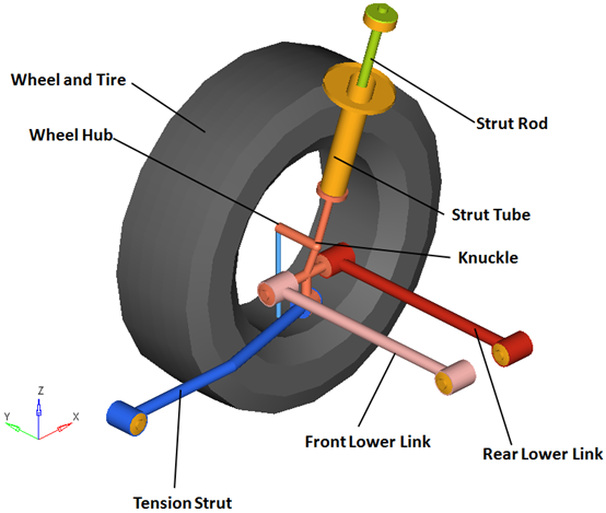 従来の設計では、ストラットはナックルに結合され、荷重の大部分を支えます。一方、リンクは、サスペンション特性の設定に役立ち、それほど多くの荷重は支持しません。