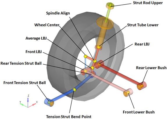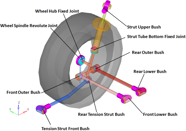 | Tension Strut Front Bush | ユニバーサル | テンションストラット | サブフレーム、車体、または地面 | フロントのテンションストラット球 | CompliantオプションがNoに設定されると、このジョイントのコンプライアンスは“オフ”に設定され、純粋な球ジョイントとして動作します。 |