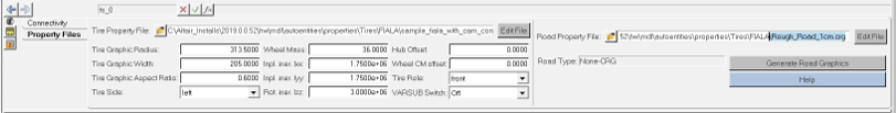 路面は、CD、CTI Tire、MF_SWIFT Tire、FIALA Tireでもサポートされています。CD Tireでは、crgファイルのパスを直接指定する必要があります。他のすべてのタイヤでは、crgファイルのパスをrdfファイルで指定する必要があります。