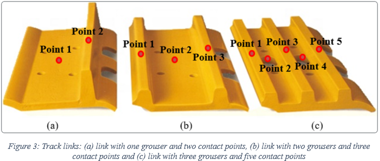 [3] D. Rubinstein and J. L. Coppock, “A detailed single-link track model for multi-body dynamic simulation of crawlers,” Journal of Terramechanics, 44(5), 355-364, 2007.