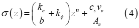 さらに、土による減衰の効果を考慮するために式(3)を修正できます[2-4]。その場合の法線方向応力は次のようになります。