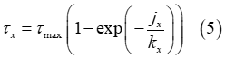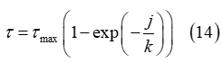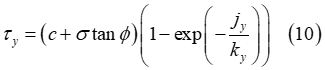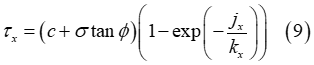 元のJanosiアプローチを使用して、式(2)で求めた土壌の最大せん断強度が、せん断応力の計算のために式(5)と(6)に代入され、以下の式になります。