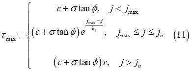 また、次の式は、式(11)で得られる最大せん断強度が次の連続関数に対応する状態を維持する必要があります。