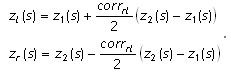 確率的な起伏のある路面プロファイルを生成するための最後の手順では、上記処理の2つの生成物であるを線形結合して、左右のプロファイルのを生成します。この処理では、correlation_rl = 0.0の場合、これら2つのシグナルが完全に独立し、correlation_rl = 1.0の場合、2つのシグナルが完全に同一になります。