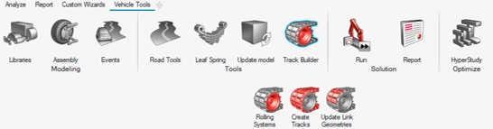 注: 車両ソリューションにアクセスするには、Vehicle Tools Extensionを読み込む必要があります。MotionViewで、File>Extension Managerに移動して、Vehicle Tools Extensionを有効にします。