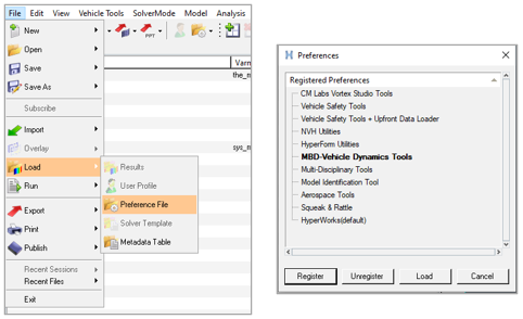 - MBD-Vehicle Dynamics Toolsプリファレンスファイル()を読み込みます。
