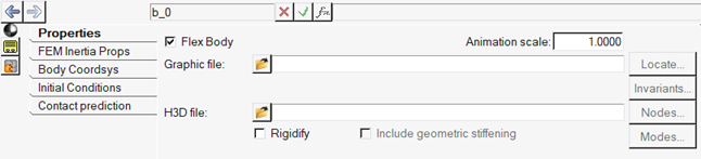 注: MDLおよびユーザーインターフェースを介して、弾性体の許容値を設定できます。弾性体の節点と対応するMDLポイントの間の絶対値がこの許容値を超えている場合、MotionViewはダミーボディを自動的に挿入し、その差を埋めます。その差がトレランスより小さい場合は、エンティティはダミーボディなしにADAMSにエクスポートされます(明示的にリクエストされている場合を除く)。