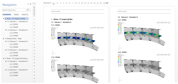 このオプションは、選択された各結果について新規のチャプターを生成します。各チャプターは、選択された荷重ケース毎のサブチャプターを有し、選択されたパーツ毎の専用のサブチャプターを有します。