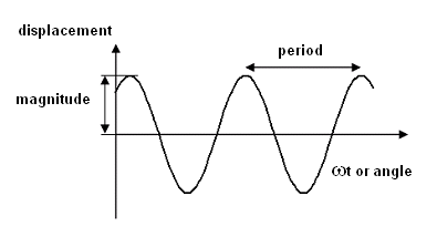 特定の角度wtについて、変位の大きさは次のように計算されます: