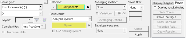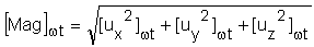 ベクトル(変位の大きさなど)またはテンソル(フォンミーゼスの応力値など)のインバリアントの複素結果は、特定の角度における、その角度での各成分の応答からのみ計算することが可能です。例えば、変位のx、y、z成分の複素応答は: