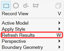 Refresh Results Refresh Resultsは、表示が変化するたびに結果プロット(コンター、ベクトル、テンソル、アイソなど)をすばやくリフレッシュするための便利な方法です。 1回クリックするだけで、現在表示されているエンティティに基づいて、プロットが自動的に更新されます。 このオプションは、グラフィックス上で右クリックして表示されるコンテキストメニューで利用できるほか、キーボードショートカットのWでも起動できます。 図 1. 注: この機能は、HyperView - MultiCoreプロファイルではサポートされていません。