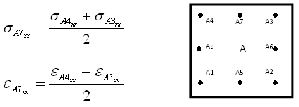コンターにおける中間節点の要素結果 中間節点とは、2次要素のコーナー節点間の節点を意味します。 HyperView はContourパネルでUse Corner Dataオプションにチェックマークが入っている際、はすべてのコーナーおよび中間節点の結果を表示します。ただし、ソルバーが中間節点結果を出力しない場合(NastranやOptiStructなど)、Show midside node resultsボックスにチェックマークが入っていると、HyperViewは中間節点の応力およびひずみを次のように計算します: 中間節点の応力およびひずみテンソルは、コーナー節点テンソルの平均です。図 1. 例 注: 上の例において、中間節点は、A5、A6、A7およびA8です。 中間節点のインバリアント値(vonMisesおよびprincipal)は、それらのテンソル値を使って計算されます。