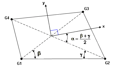 - xは、G2-G4とG1-G3の間の角を二等分するラインの方向