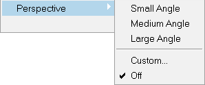 Perspective Perspectiveオプションでは、正確な3次元遠近画法を使ってグラフィックスを表示します。 グラフィックスは、Small Angle(10度)、Medium Angle(25度)、Large Angle(40度)、またはCustom(5 - 45度)の各遠近画法を用いて表示できます。遠近画法をオフにすることも可能です。図 1. Perspectiveオプション