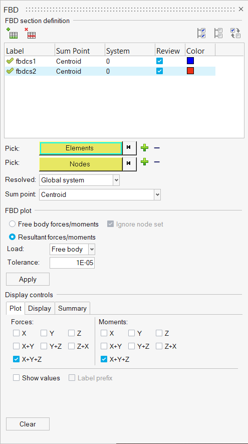 Free Body Diagram (FBD)ツールは、Grid Point Force (GPFORCE)結果の抽出およびポスト処理を容易にし、自由体図(FBD: Free Body Diagrams)の作成と編集に使用できます。