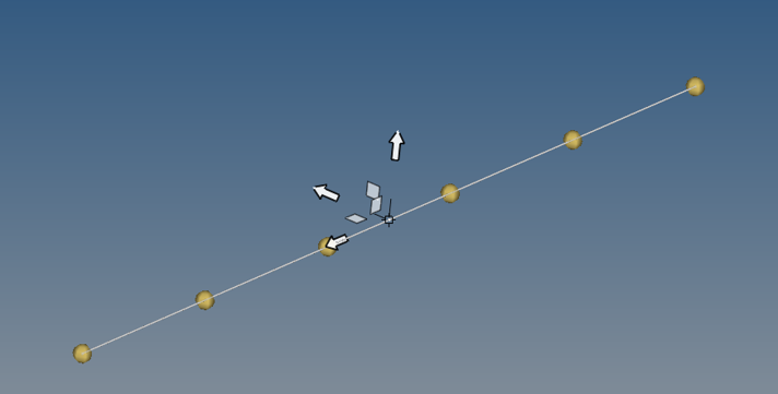 センターポイントは、空間内で自由にドラッグできます。ラインの長さと方向は、マニピュレータが剛体エンティティとして動かされても変わらず留まります。また、マニピュレータの端点はセンターポイントと同等に動きます(同じ平行移動)。