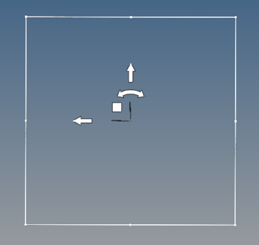 各矢印は、直線に沿って自由にドラッグできます。矩形の領域全体はそれに従って移動し、サイズと形状は同じに留まります。弧状の矢印は、掴んで、矩形領域を面への法線周りに回転させることができます。正方形のハンドルは、領域のプレーン上を自由にドラッグして矩形領域を再配置することが可能です。