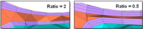 | Pyramid transition ratio | 境界層のヘキサ要素からコアのテトラ要素への移行時に使用されるピラミッド要素の高さに関して指定します。 |