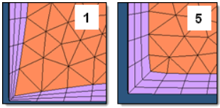 | Max layer diff between neighbor elems | 隣接する要素間の層の違いの最大をコントロールします。これは、すべての境界が1度に縮退されることを避けるためのものです。このパラメータは、BL truncationにおいてスムーズな境界層を提供します。このパラメータには、トータルの境界層の1/4の数が適しています。また、レイヤー高さにも依存します。 重要: (推奨される値幅は成長層の数により異なります。) ![]() 注: Smooth/Truncate BLを選択した場合に使用できます。 |
