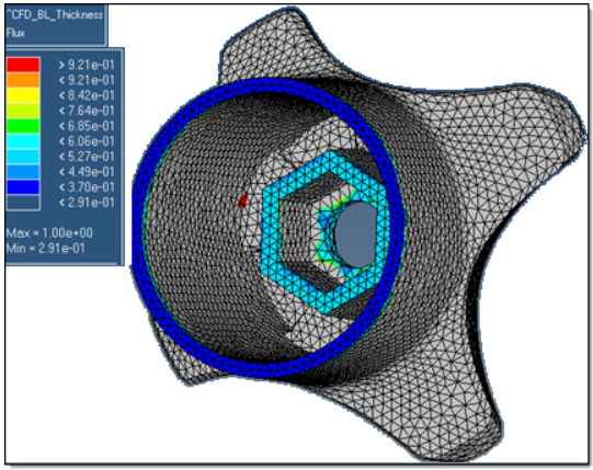 | Min tetcore/final layer height ratio | 詳細近傍内で境界層が作成されると、小さいスペースがテトラメッシュ用に残されます。このため、アスペクト比の高いテトラ要素が作成されます。このパラメータは、最終的なレイヤー高さの係数としてコア領域のテトラ要素の最小高さをコントロールします。 重要: デフォルトの値は、推奨される値でもある1.3です。 注: Smooth/Truncate BLを選択した場合に使用できます。 |