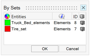 を使用して、まずエンティティの種類 (Assemblies、Components、Elements、Materials、Nodes、Properties、またはSystems) を選択してから、画面からエンティティを選択するか、またはアドバンスト選択を使用します。