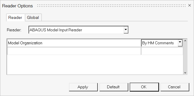 各ソルバーモデルリーダーは、それぞれのオプションについて異なる動作を示す場合がありますが、全体的な標準の動作は次のとおりです:- By HM Commentsオプション: 過去のモデルのエクスポートでHyperMeshにより作成された指定のファイル内のHyperMeshコメントを与えます。