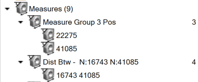 メジャーグループに含まれているすべてのアイテム / エンティティは、ResultsブラウザのMeasure itemリストに表示されます。Measure Groupフォルダーを展開してアイテムを表示します。ブラウザのツリーでアイテムを右クリックすると、削除オプションにアクセスできます。最小距離メジャーアイテムの場合、コンテキストメニューには、編集オプションが用意されています。