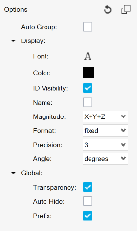 注: Auto Createは、次のメジャータイプでのみ使用できます:Position、Relative Displacement、Yaw Pitch Roll、Nodal Contour、Elemental Contour。他のメジャータイプの場合は、モデリングウィンドウで必要な数のエンティティをクリックするか、入力ダイアログでIDを入力すると、そのメジャーアイテムが作成されます。
