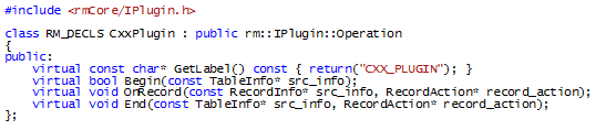 ベースクラスが優先される必要のあるの仮想関数は、GetLabelとOnRecordのみです。下記のクエリとアクションオブジェクトはBegin()、OnRecord()およびEnd()イベントに渡されます: