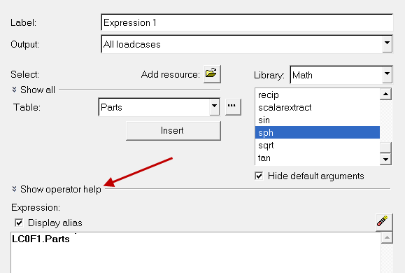 各種演算子の詳細(説明、シンタックス、引数など)は、Show operator helpドロップダウン矢印をクリックして表示させることができます。図 2.
