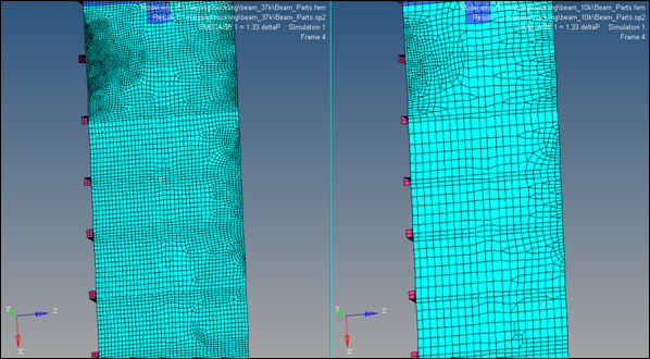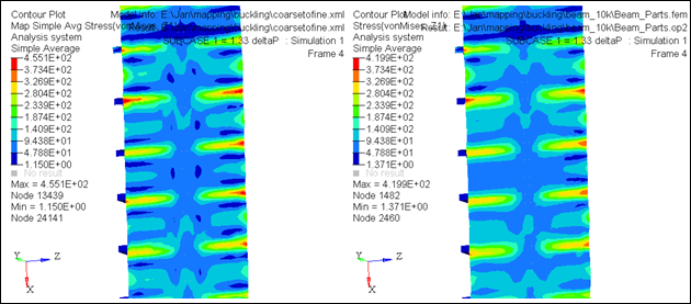 左側のモデルは細かいメッシュ(~37K要素)で、右側の粗いモデル(~10K要素)からマッピングされた値を表す:図 4.